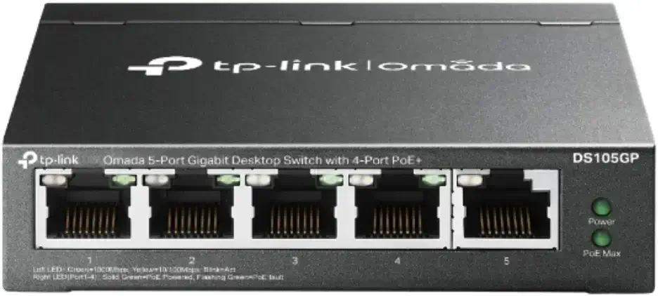 Model: TP-Link DS105GP Turi: Gigabit PoE+ switch, boshqarilmaydigan Portlar: 5 × RJ45 (10/100/1000 Mbps) PoE portlari: 4 ta PoE+ port